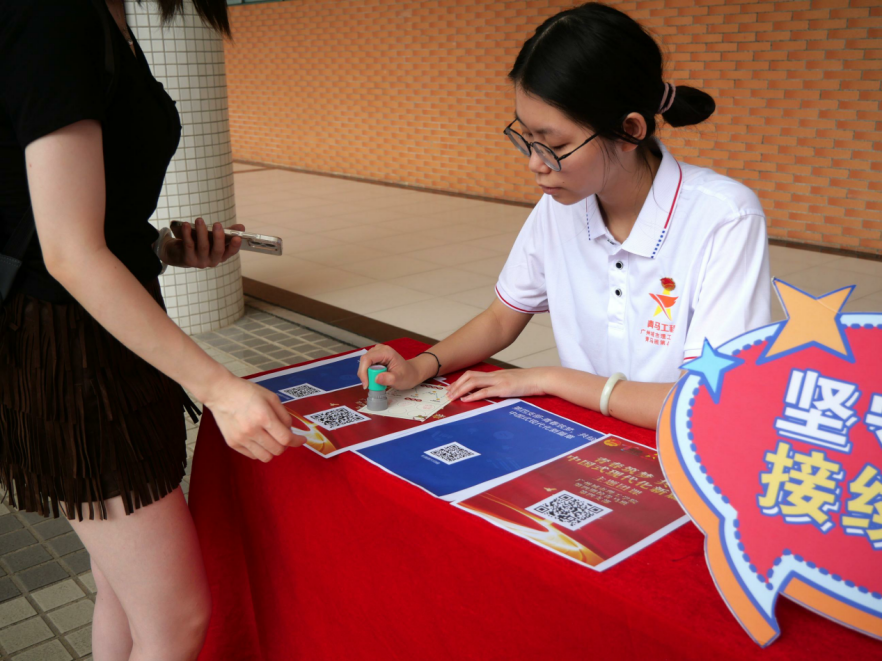 学生进行答题集章活动 (校团委宣传部谢靖美 摄)
